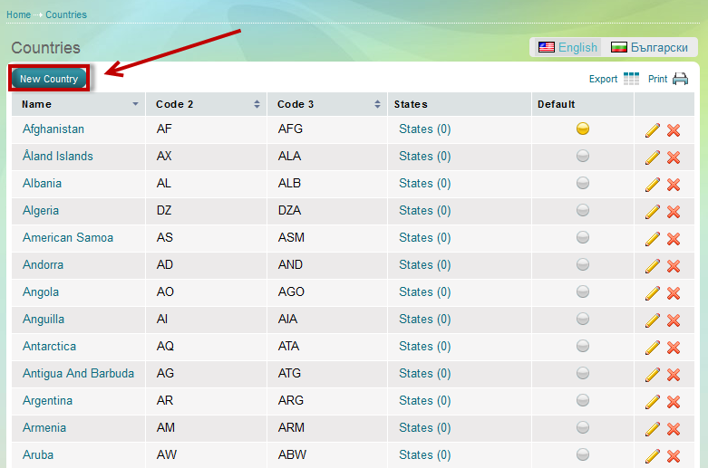 Go to the Settings menu, under 'Locations & Taxes' click on Countries. Click the 'New country' butto...