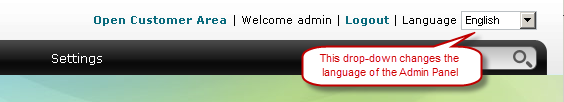 In Admin Panel you can change language with the help of 'Language' drop-down menu in the Login/Logout bar on the top right of every page.