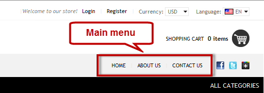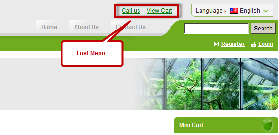 Built-in menus are Fast menu (the top menu), Top menu (major website