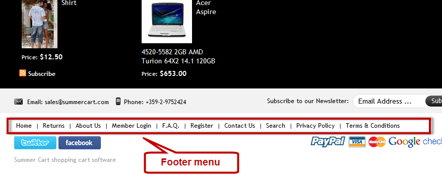 Footer menu