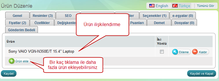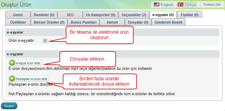 Tekrar ürün oluştururken gördüğünüz sayfaya giriyorsunuz.