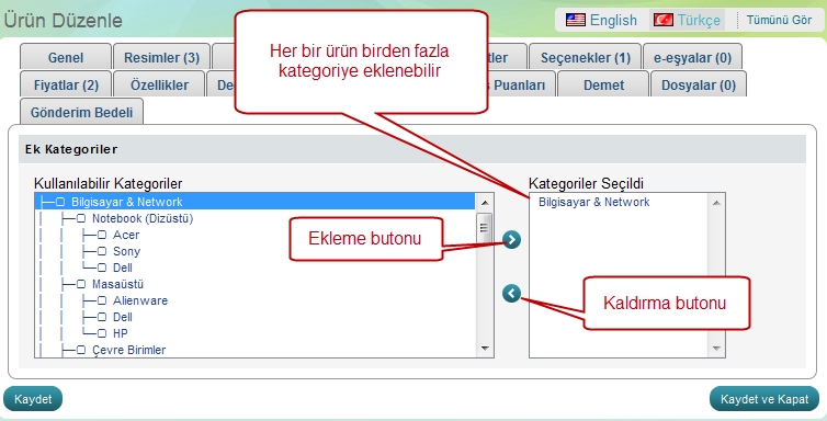 Öneri: Kategoriler ve tedarikçiler listesi sizin tarafınızdan giriliyor. Bu yüzden eğer isterseniz yeni kategori veya tedarikçi ekleyip düzenleyebilirsiniz.