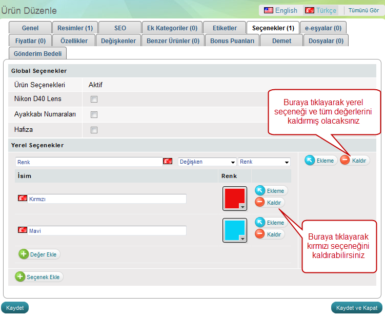 Ürün Seçeneklerini Üründen Kaldırmak