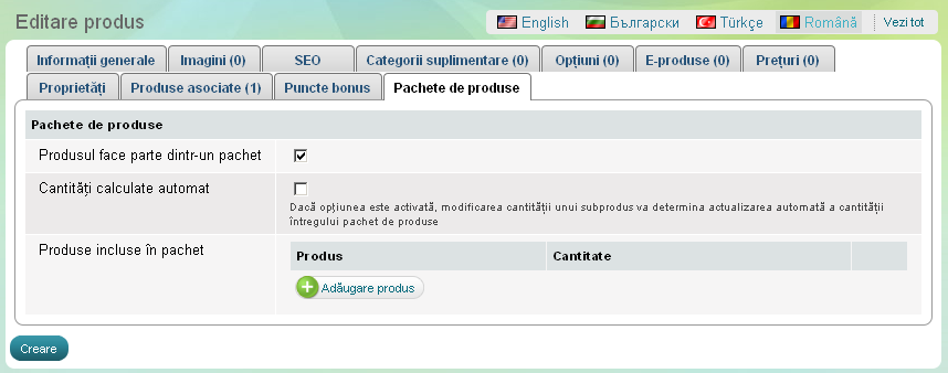 Tabul 'Pachete de produse' în pagina 'EditareProduse'