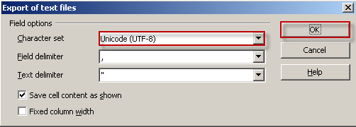 - Va apare un alt meniu. Alegeţi Unicode (UTF-8) din prima listă de opţiuni multiple, apoi faceşi click pe butonul OK.