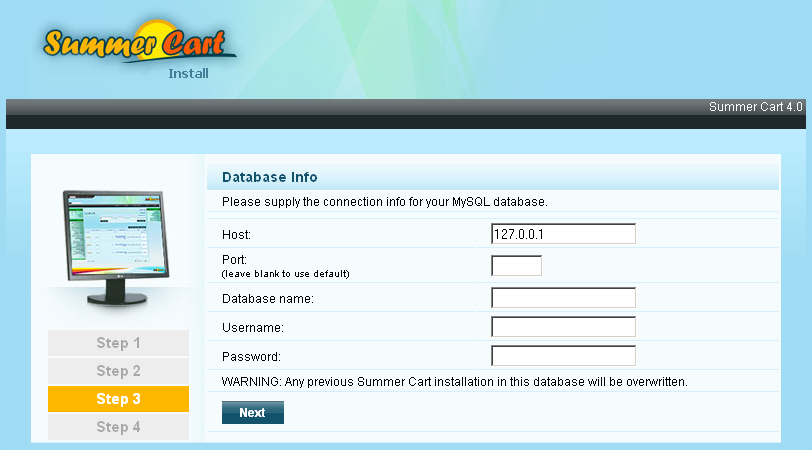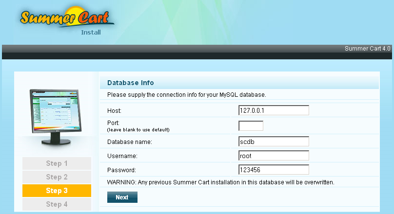 installation of Summer Cart. Open web browser and enter in the address
