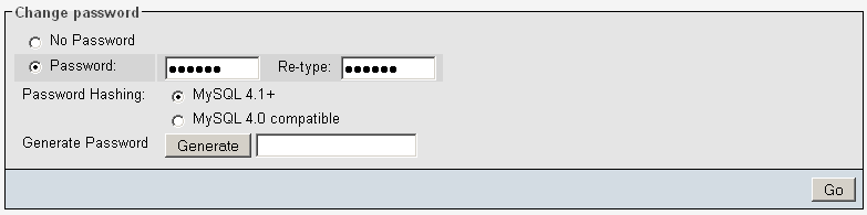 - New page appears. Find Change password section and enter whatever password you want to use. We entered - 123456 After that click on button Go for saving the changes.