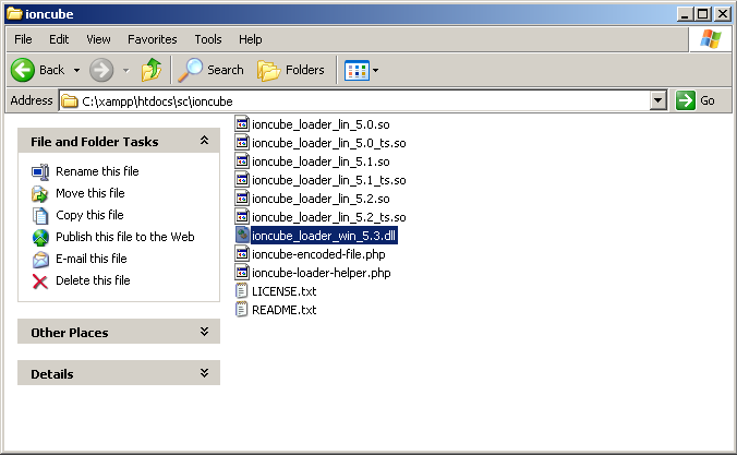 Download the archive and copy the files from it in folder - C:\xampp\htdocs\sc\ioncube Actually we need only one file from that archive - ioncube_loader_win_5.3.dll 5.3 is the version of the PHP. You can get version of your PHP from the installation wizard(screen above) - PHP Version - 5.3.5 It is possible your PHP version to be different and you need to get the .dll file which corresponds to your PHP version. You need to enter the path to the .dll file in the php.ini file in order to install IonCube Free Loader.
