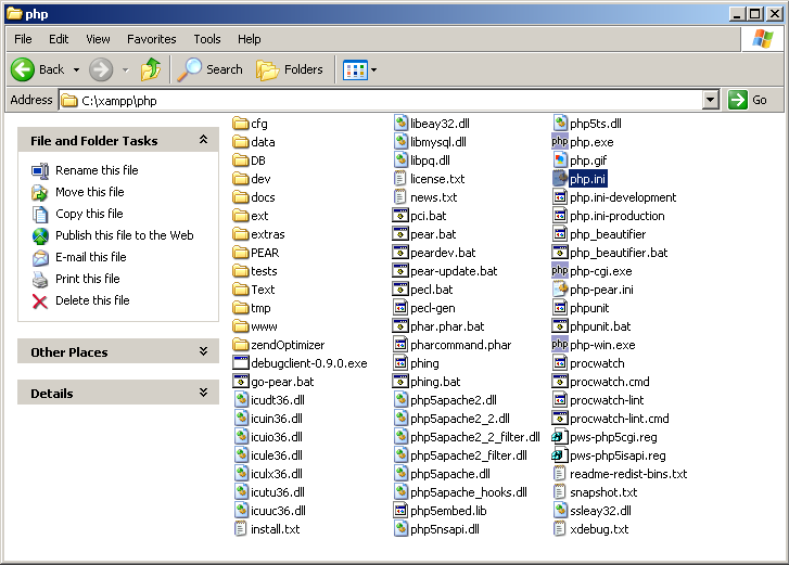 - You can find the php.ini file in folder - C:\xampp\php