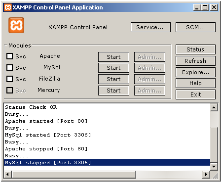 server. You can do this with clicking on Stop buttons next to Apache and MySQL, wait few seconds and that start it again.