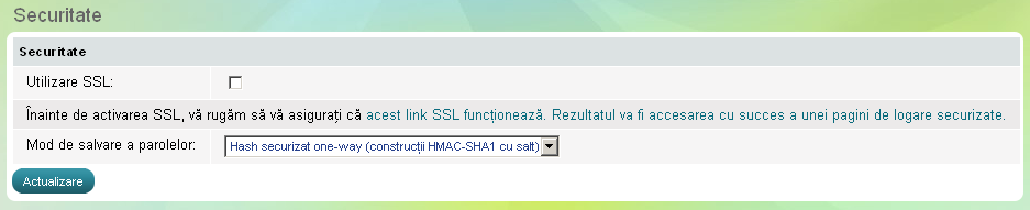 >> Mergeţi la meniul Setări, la 'Configurare Magazin' click pe link-ul Securitate.