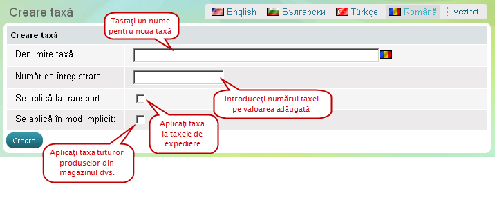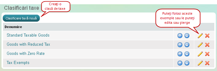 - După ce aţi creat una sau mau multe clase de taxe, mergeţi în pagina 'Editare taxe'.