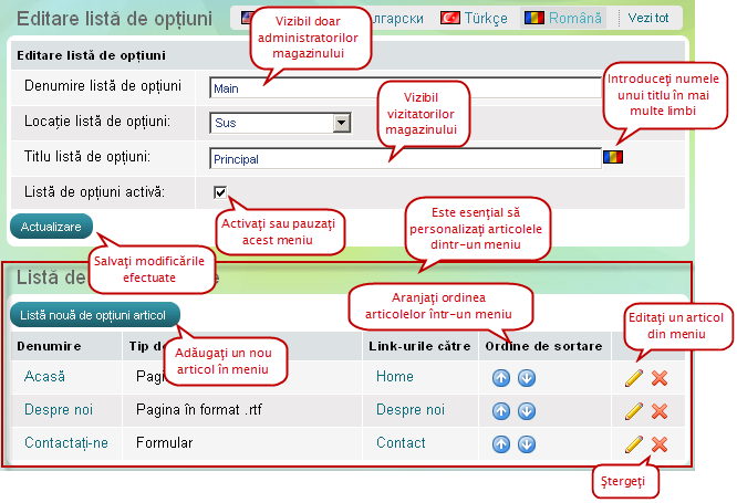 - să editaţi articolele deja existente în meniu