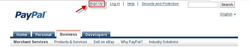 - Click the "Sign Up" link on the top of the page to create your PayPal account.