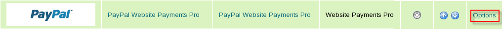 - Click on the "Options" link for the Website Payments Pro module.