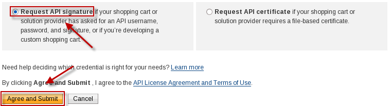 - Select "Request API signature" and click "Agree and Submit"